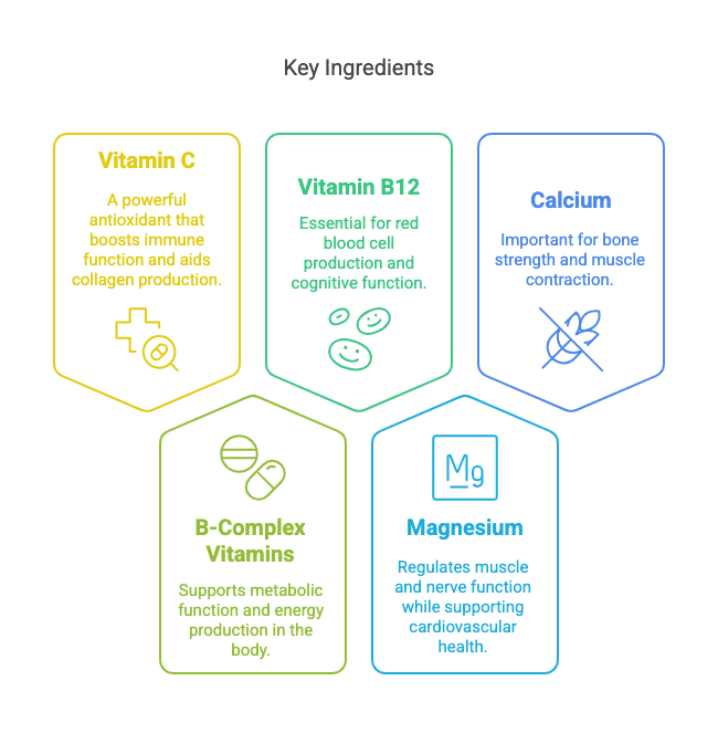 - B-vitamins to restore energy and optimize cellular repair processes.
